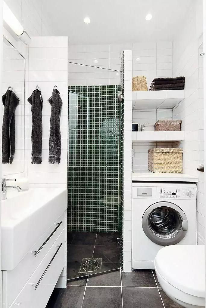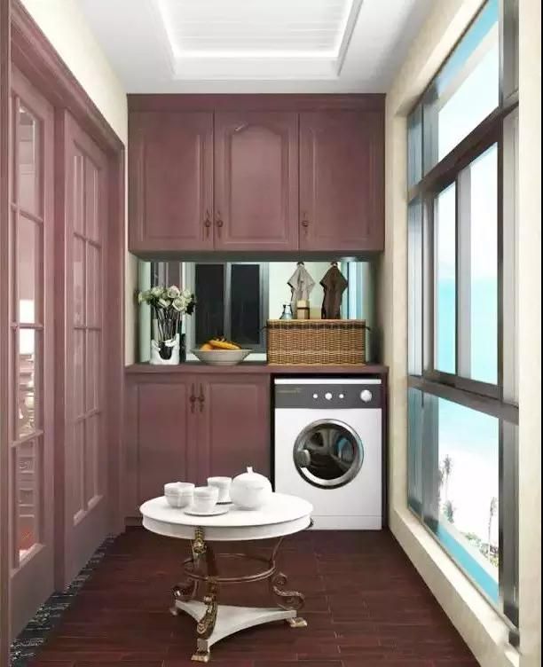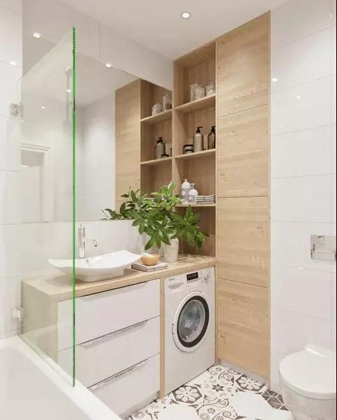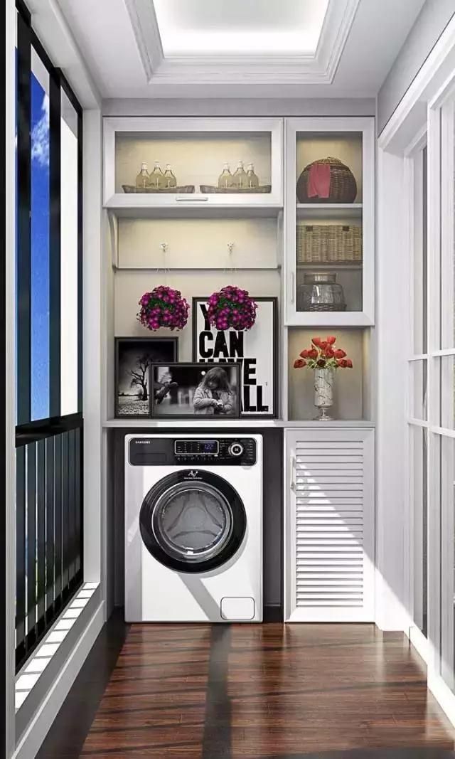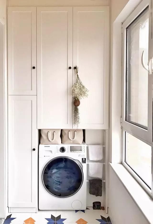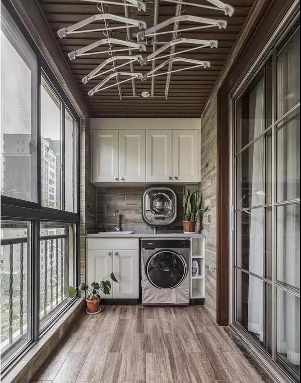 衛(wèi)生間面積不夠,或者覺得陽臺放洗衣機(jī)比較方便的小伙伴 ,也可以考慮把洗衣機(jī)放陽臺,這樣洗完直接晾曬。