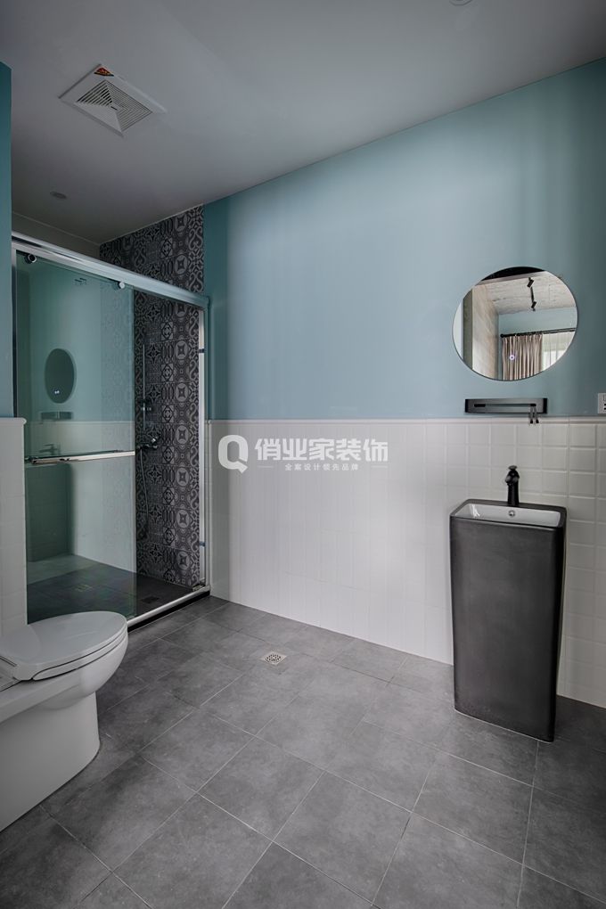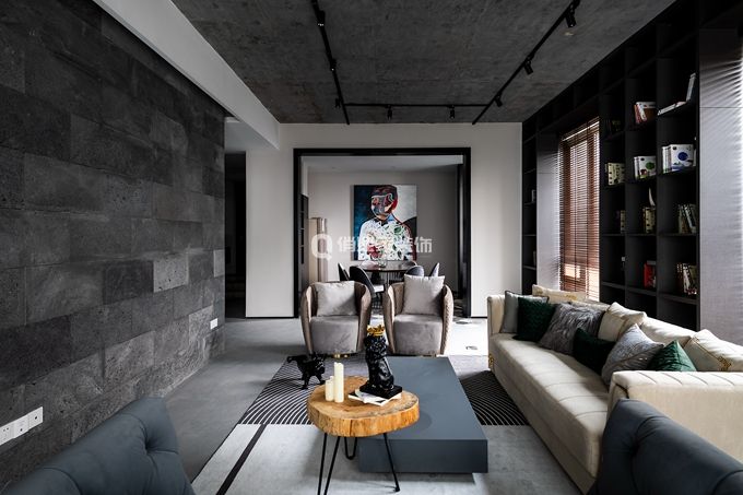 1、客廳裝修:頂面保留了喜馬拉雅建筑的原始頂,粗獷之余又帶有l(wèi)oft的自由和前衛(wèi)。地面則采用的是啞光水泥漆,質(zhì)樸的效果與頂面的樣式和諧統(tǒng)一。大氣簡約的硬裝造型伴隨著不同深淺的灰色充盈著整個空間,以中性的姿態(tài)給人絕對的都市時尚感!