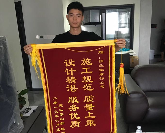 業(yè)主老師贈俏業(yè)家裝飾工程有限公司嘉獎錦旗——“施工規(guī)范,質(zhì)量上乘,設(shè)計精湛,服務(wù)優(yōu)質(zhì)”。