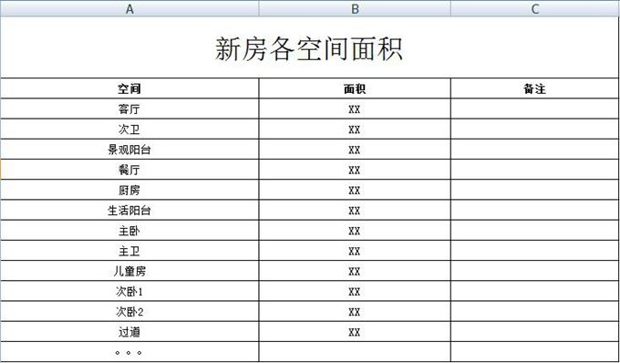 第三步:用Excel記錄各房間的面積