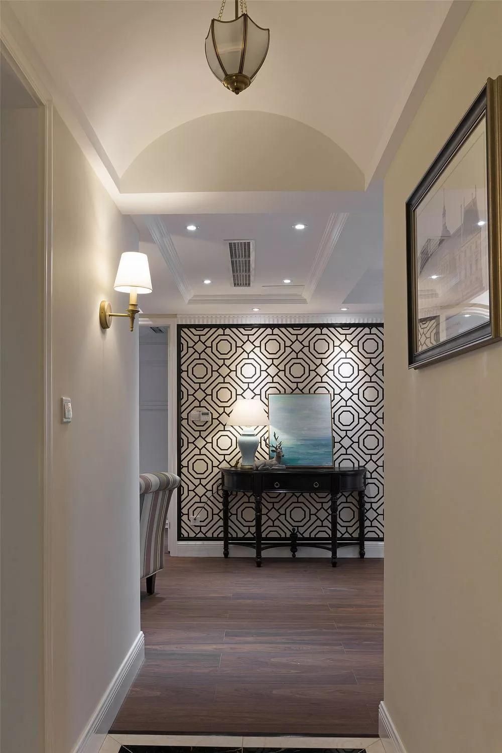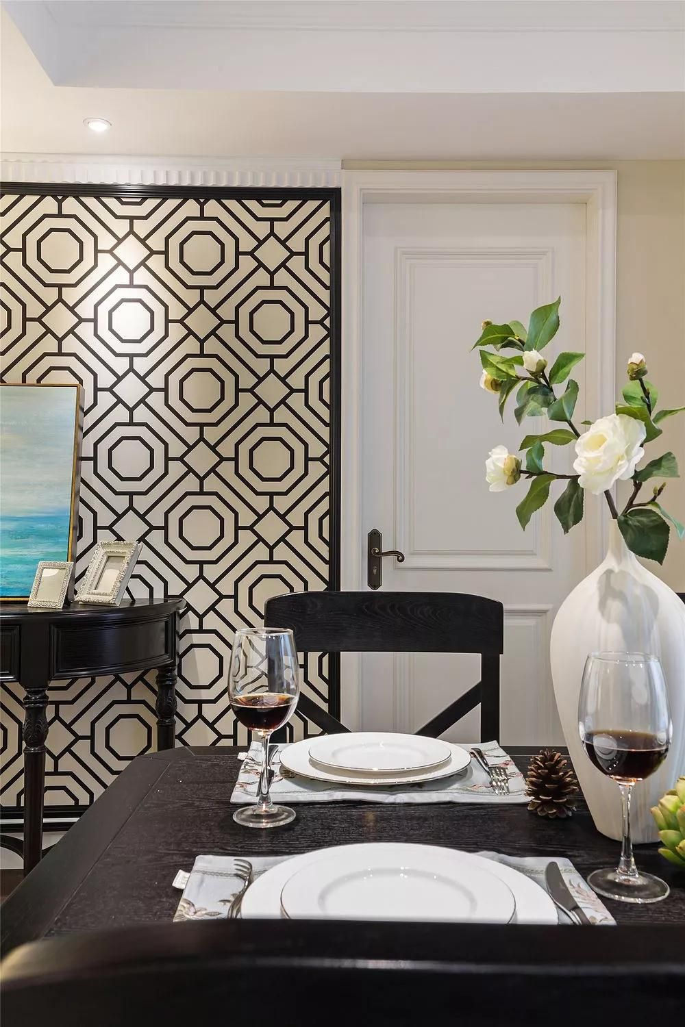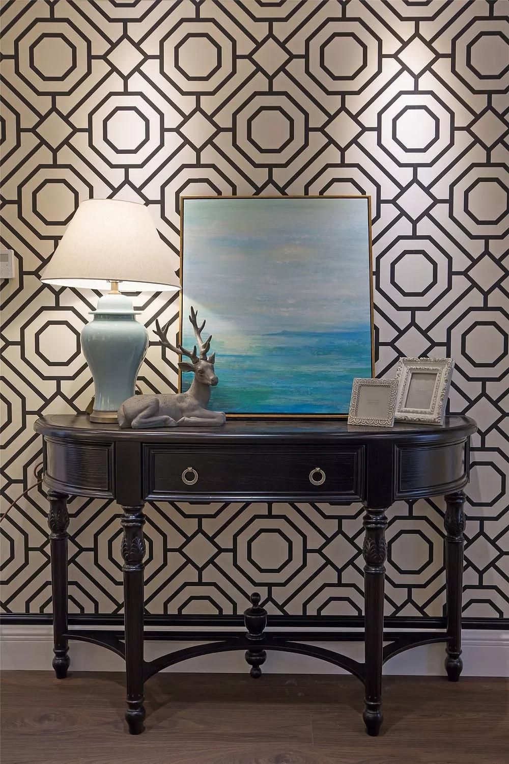 玄關(guān)處的背景墻設(shè)計(jì)營造濃濃的美式氛圍,與餐廳景致相互映襯,浪漫而有情調(diào)。