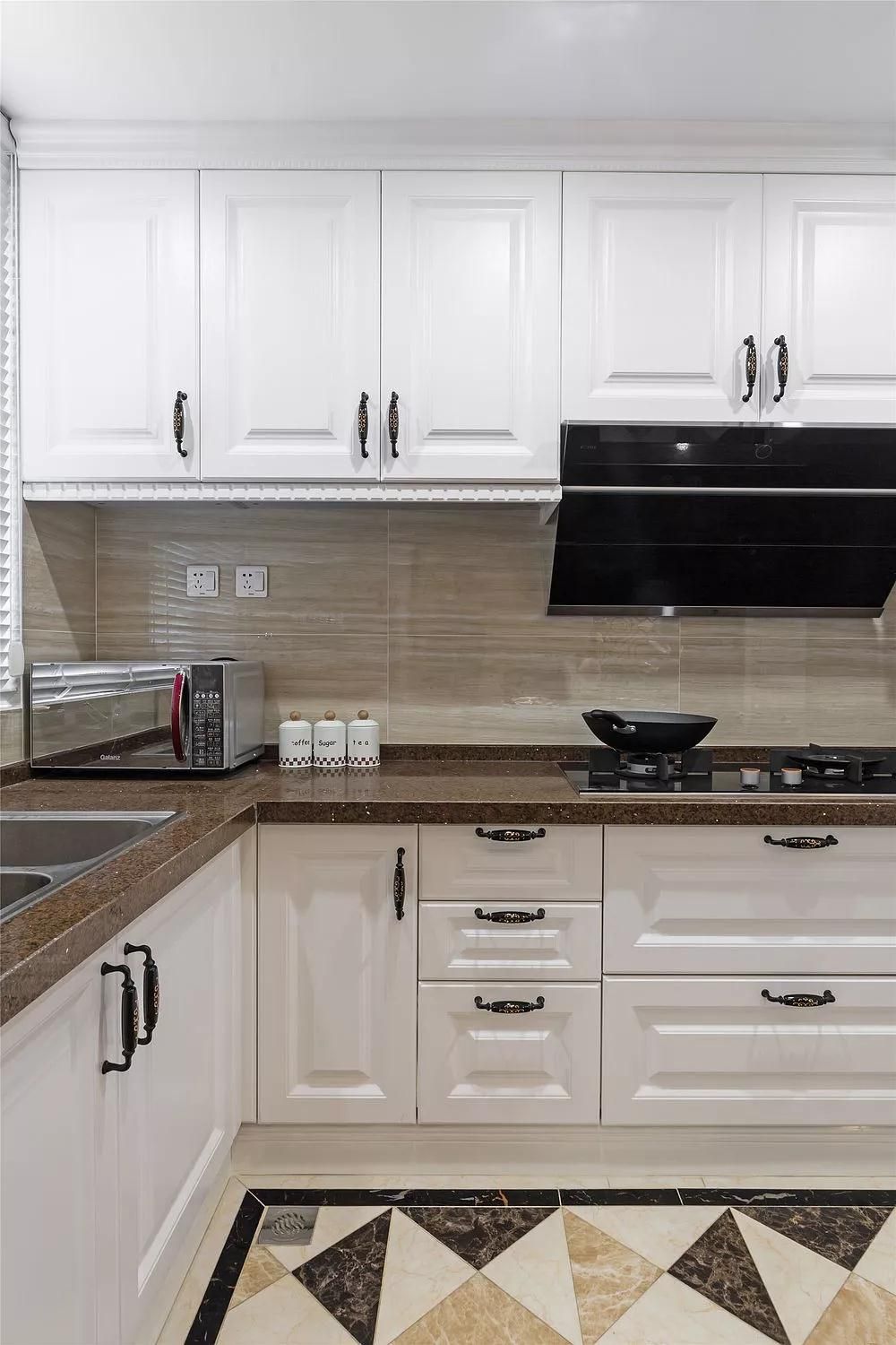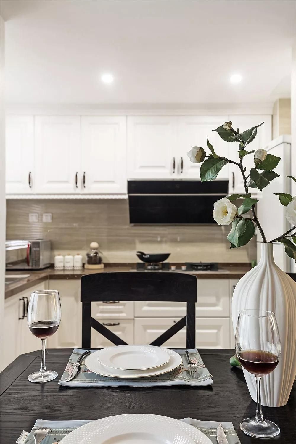 開放式的設(shè)計(jì)讓餐廚空間可以充分互動,在風(fēng)格上也是選用了美式的設(shè)計(jì),做出一個呼應(yīng)。