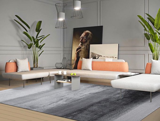 如果你的家裝風(fēng)格是偏性冷淡的工業(yè)風(fēng),可以選擇這類高級灰地毯,漸變的灰白色圖案,增加了空間層次感,呈現(xiàn)出現(xiàn)代輕奢的百搭風(fēng)格的同時(shí)提升了居室的整體格調(diào)。