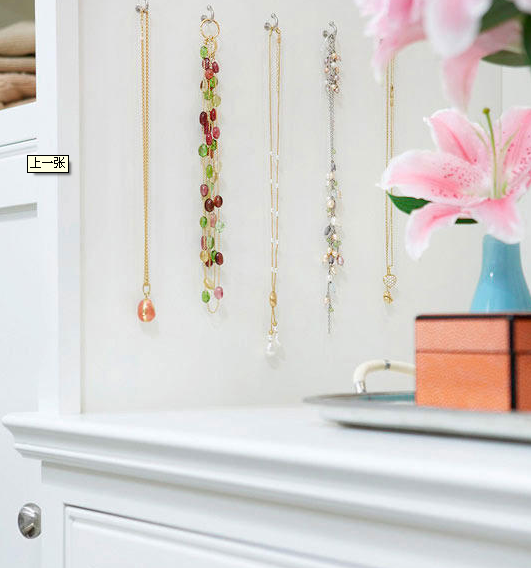 女主人不妨把這些小玩意兒用簡單的掛鉤,安置在墻壁上上。絢麗的珠寶會讓墻邊變得精巧耐看。