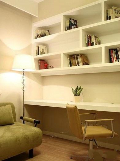 射燈照在墻上,冷色調(diào)也有了暖暖的感覺。