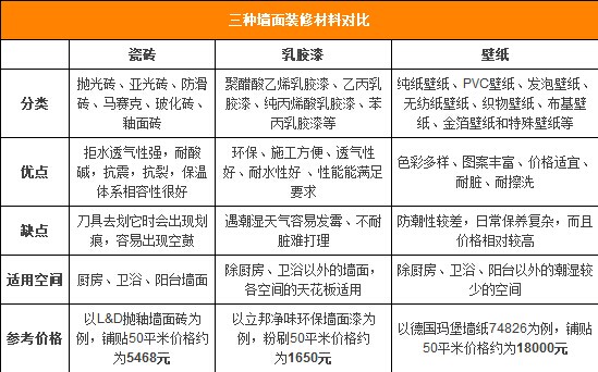 三種不同的建材各有其優(yōu)缺點與適用的空間,針對不同的空間選擇適當?shù)慕ú模部舍槍€人的需求與經(jīng)濟實力來挑選。從表格可以看到,一般來說乳膠漆的價格相對于壁紙與瓷磚是較為實惠的,而壁紙是價格較高的建材。